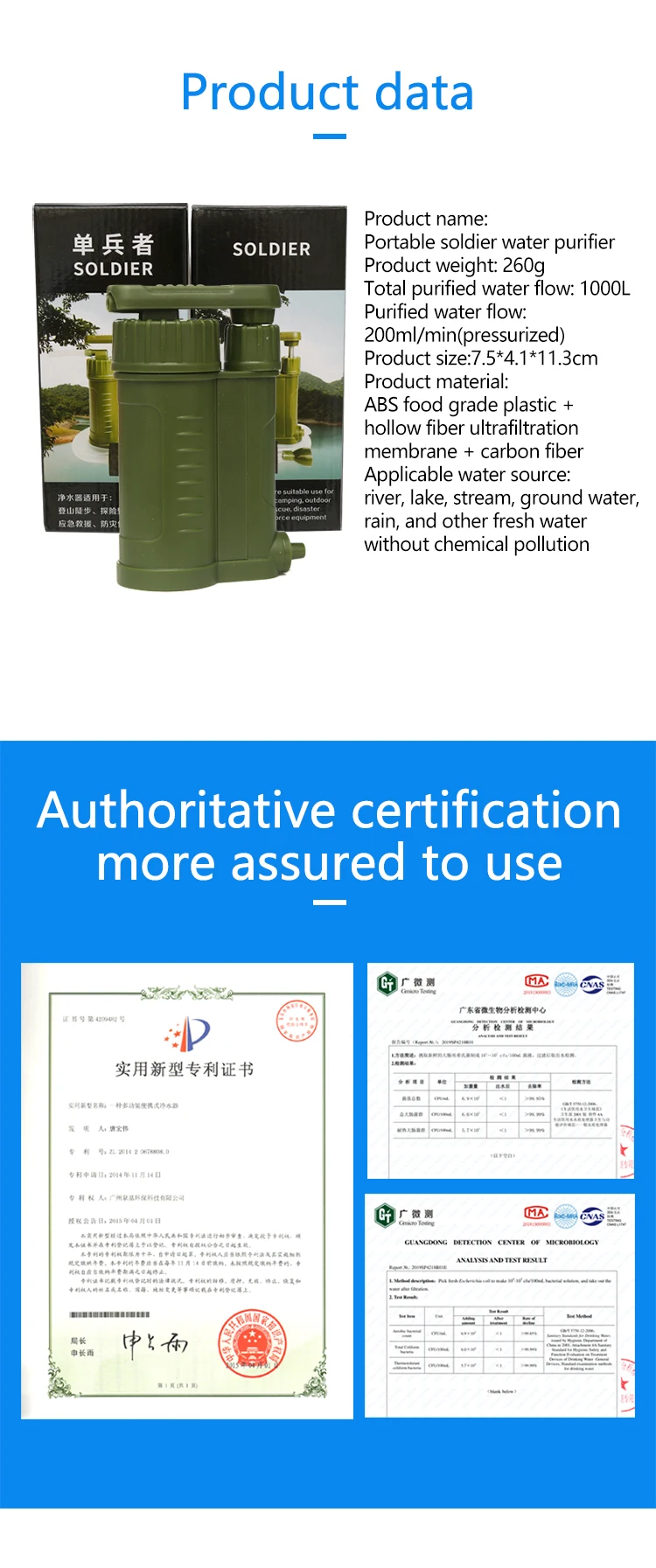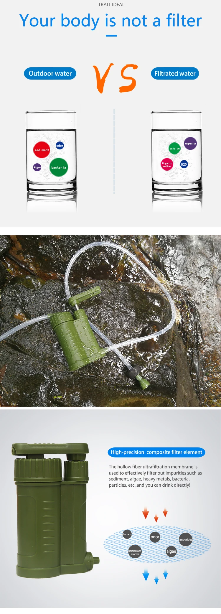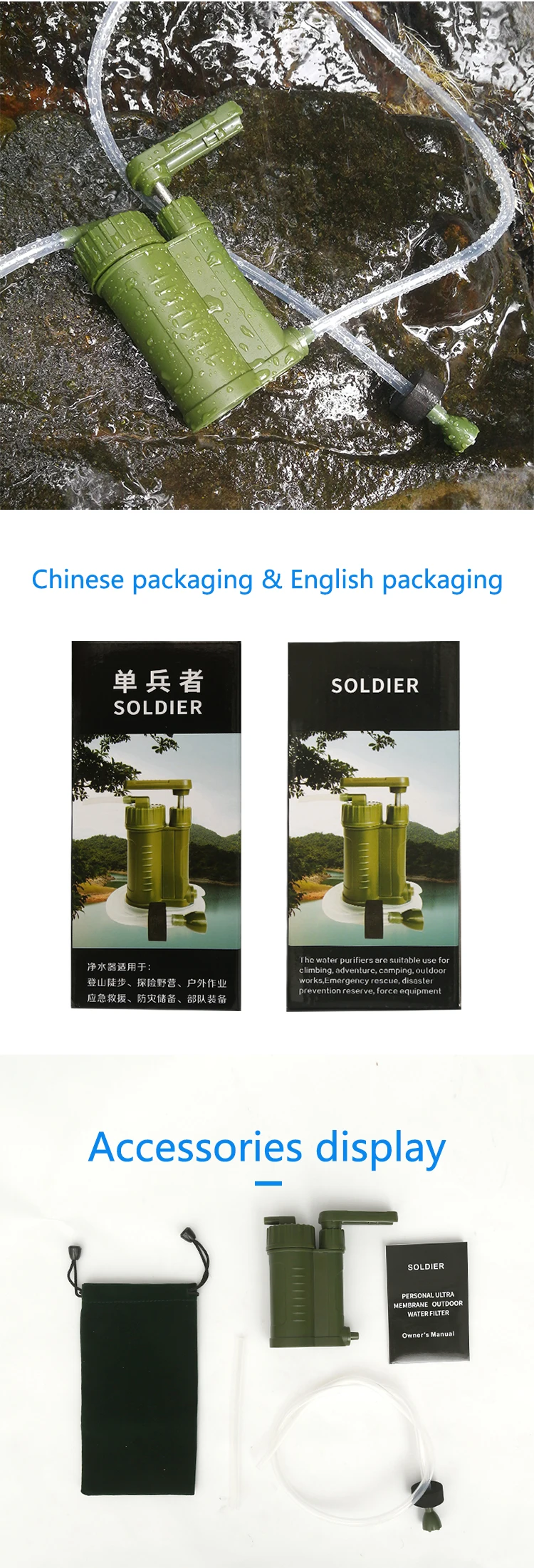 Filtro de agua Natural Solutions, purificador de agua potable directo, filtro de agua portátil para soldado con tubo
