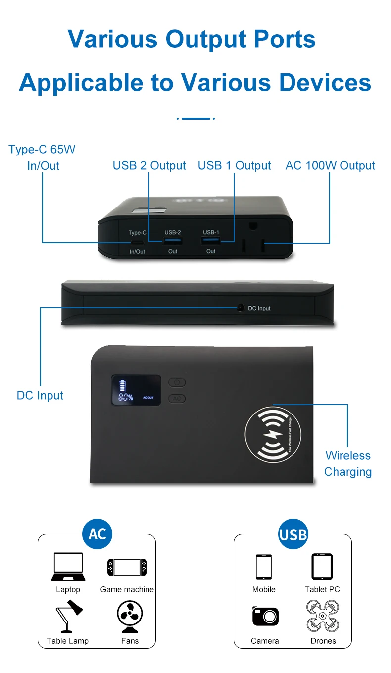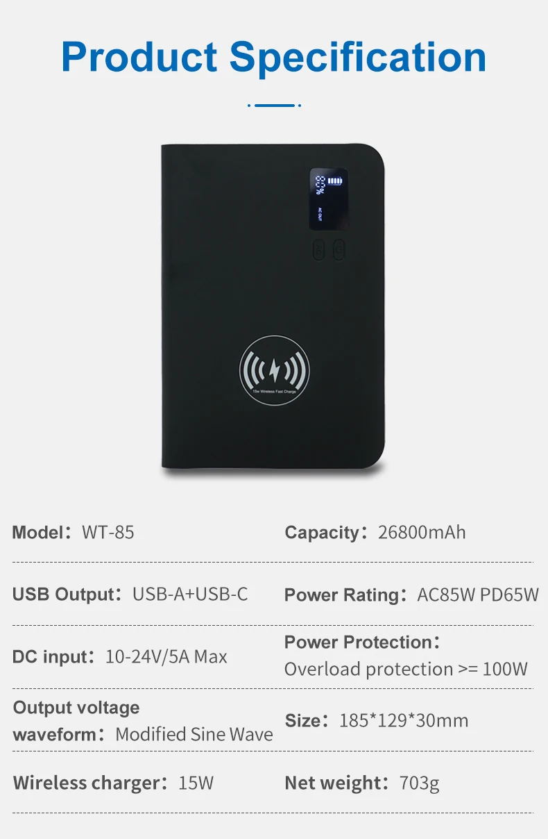 Universal AC/DC 110V 220V Inverter Power Supply Portable Laptop Chargers 26800mAh PD65W 85W AC Power Bank